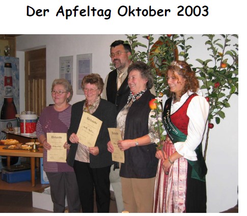 Der Obst- und Gartenbauverein Wartenberg hat im Oktober 2003 anläßlich eines Apfeltages einen Apfelkuchenwettbewerb veranstaltet, an dem sich 19 Bäckerinnen beteiligt haben.